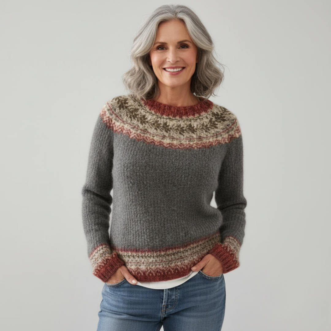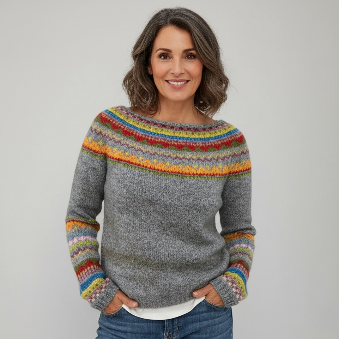 Sweater with Colourful Norwegian Pattern, Soft, Warm & Unique